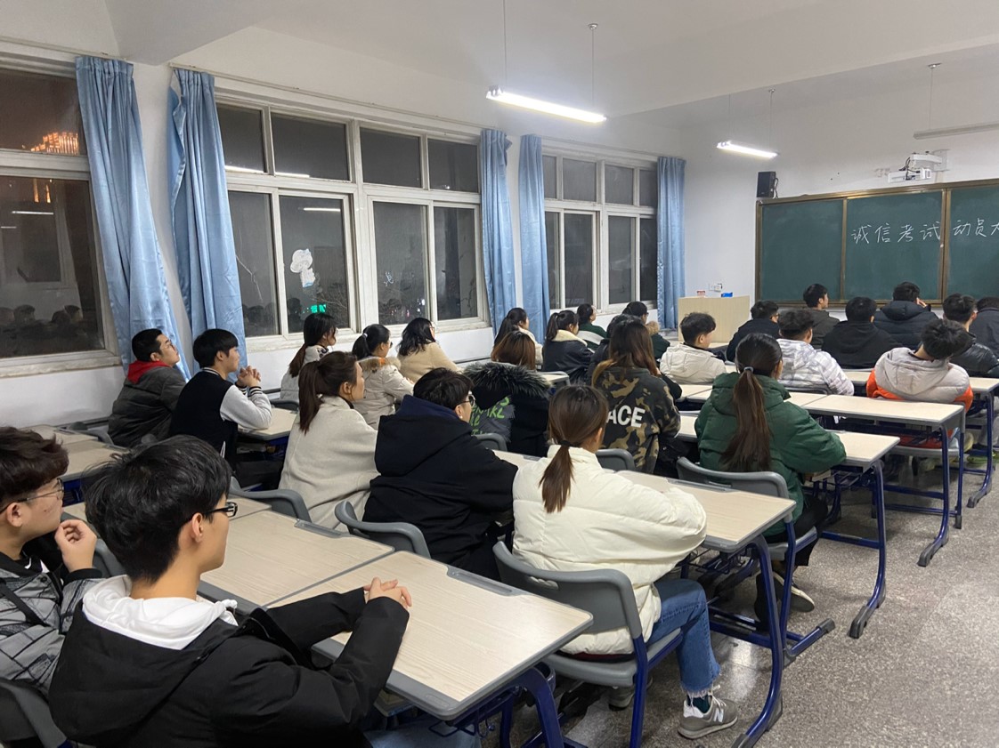 由于期末考试将近,为了进一步规范学校考试工作,树立良好考风,楚亚杰辅导员召开了以“诚信考试”为主要内容的主题班会,以端正学生们的考试态度,用积极向上的心态迎接本次考试。