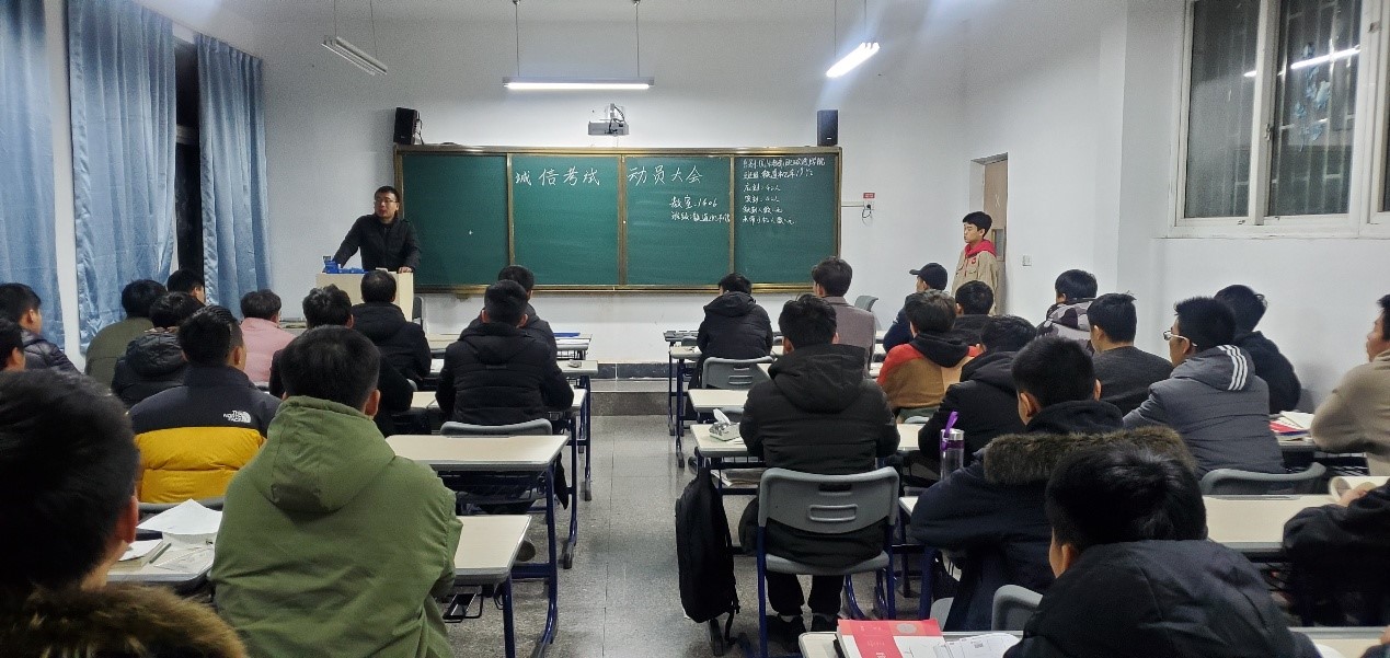 2019年12月26日晚上19:30,国际教育(欧亚交通)学院召开诚信考试动员大会,辅导员楚亚杰分管班级全体学生于各班教室开展本次班会。