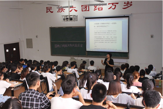座谈会上,宋丽萍书记首先对同学们反映的班级存在的班风学风问题进行了解答,并对学院内存在的不正之风进行了批评教育。之后,宋丽萍书记又带领全体同学一起学习了人民日报《沉睡的大学生》一文,该文犀利的语句,给同学们懒散安逸的学习状态敲响了警钟。最后,宋丽萍书记又以培养成长型的思维方式为切入点,鼓励并教导同学们要有一颗不断进取的心态,不断的发展和提升自身的层次。