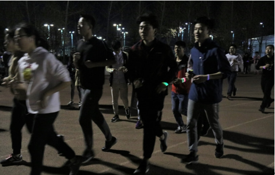活动前期,为同学们讲解了夜跑相关知识及注意事项,并制定夜跑计划。321日晚,活动正式拉开了序幕,本次夜跑以操场为起点和终点绕着篮球场排球场的广场跑圈,吸引了不少同学的目光,“荧光夜跑”跑步无名次之分、无速度之分。