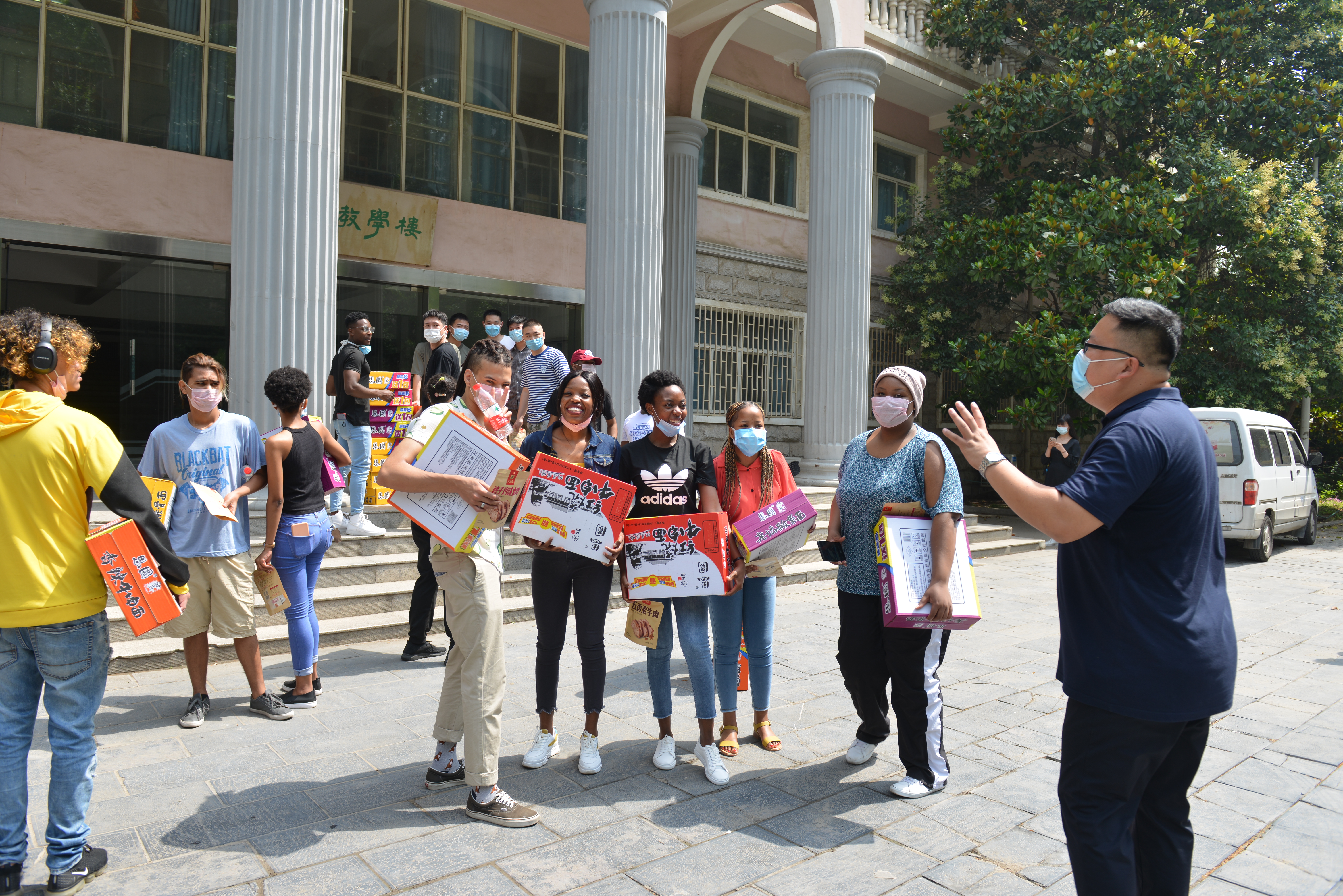 今年春节以来,新冠肺炎疫情在全球蔓延,全球人民都深受影响,我校南非留学生们也因此一直在幸福路校区进行封闭式学习和生活。目前他们已经修完学业,但因疫情,回国时间待定。我院2018级军士后班的同学们得知这一情况后,自发组织,筹措物资,共为留学生们送来老家特产的方便面、小食品等60余箱,以表达他们对留学生校友们的关心和慰问。
