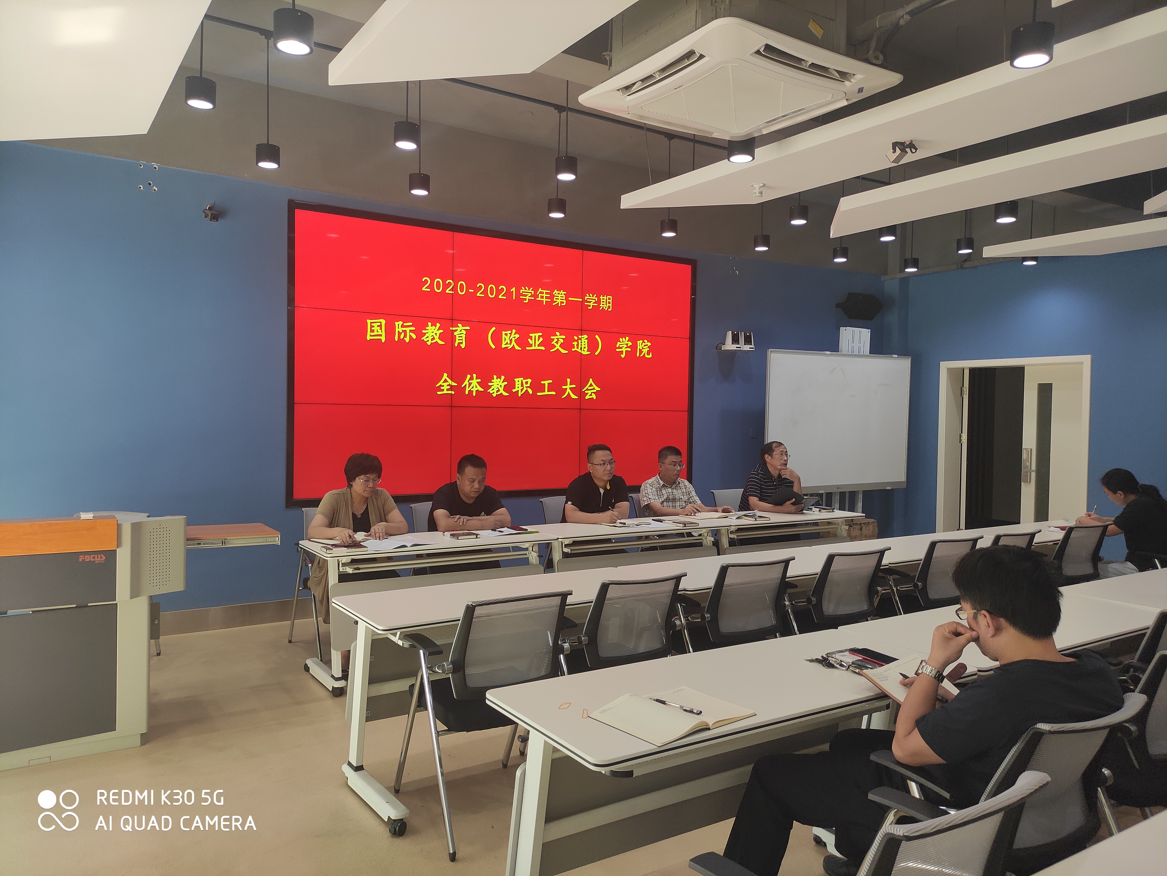 2020年9月8日下午,国际教育学院(欧亚交通学院)在7210智慧教室召开新学期工作会议,全体教职工参加了会议。会议由国际教育学院(欧亚交通学院)党总支书记曹启勇主持。