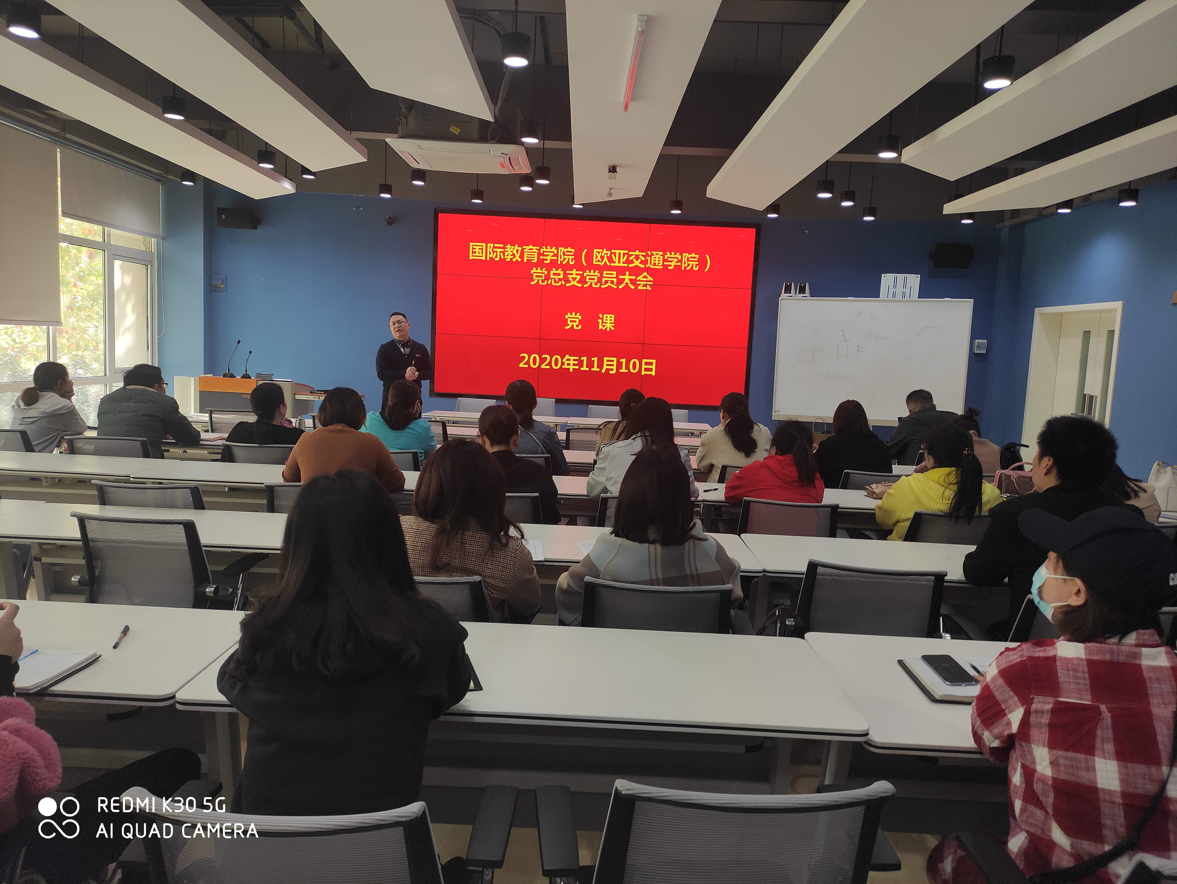 11月10日下午,国际教育学院(欧亚交通学院)党总支书记曹启勇在7215为党总支全体党员讲授了一堂题为“迈向十四五”的党课。