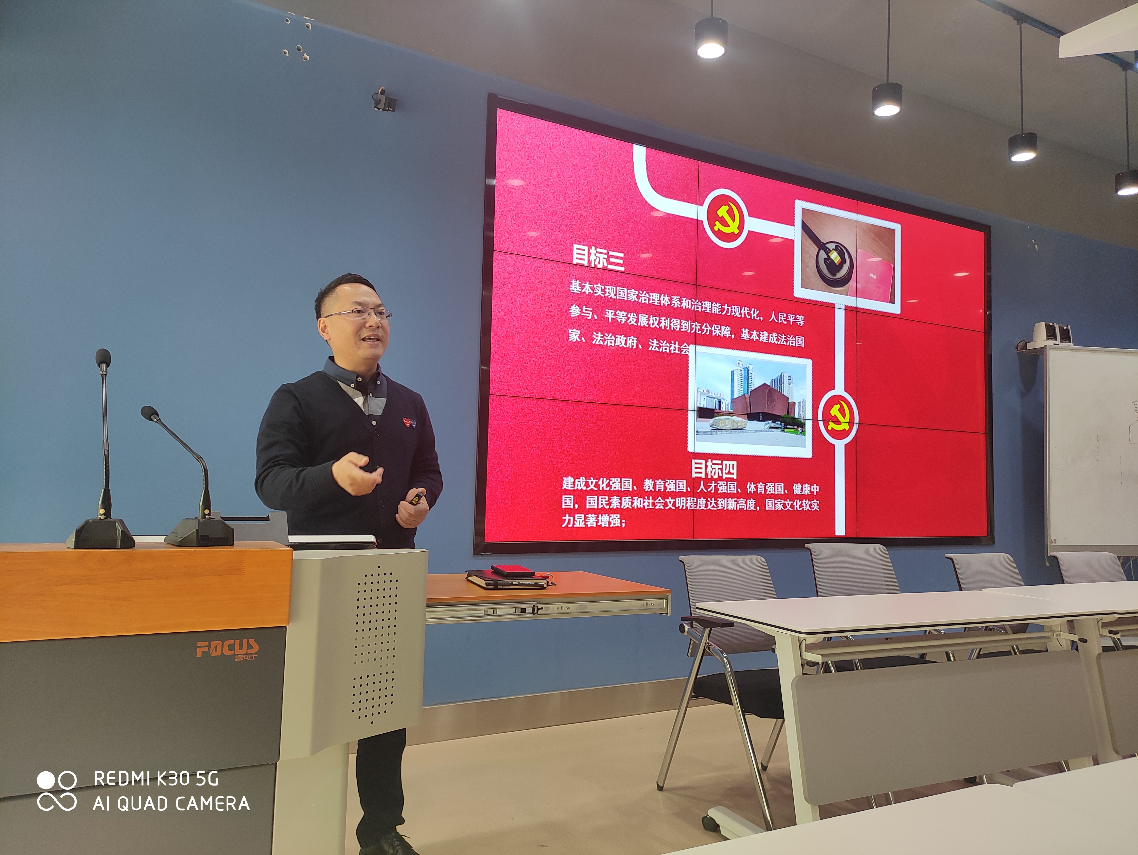 曹启勇书记首先介绍了十九届五中全会的概况,并用一组强有力的数字回顾了十三五经济社会发展的成就,接下来他为大家详细解读了十九届五中全会公报内容及其释放出的未来中国发展方向和奋斗目标的重要信号。通过解读,全体党员进一步了解了十九届五中全会的重大意义,明晰了“十四五”时期经济社会发展主要目标和2035年基本实现社会主义现代化的远景目标。