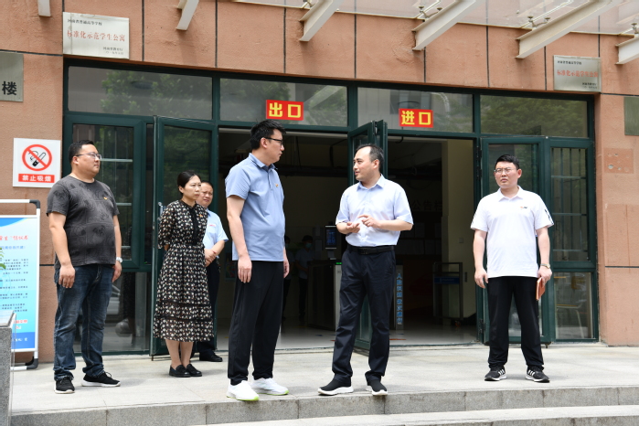6月19日上午,学校党委书记田道敏到丝路书院指导工作,校党政办公室主任郭志戎陪同调研。