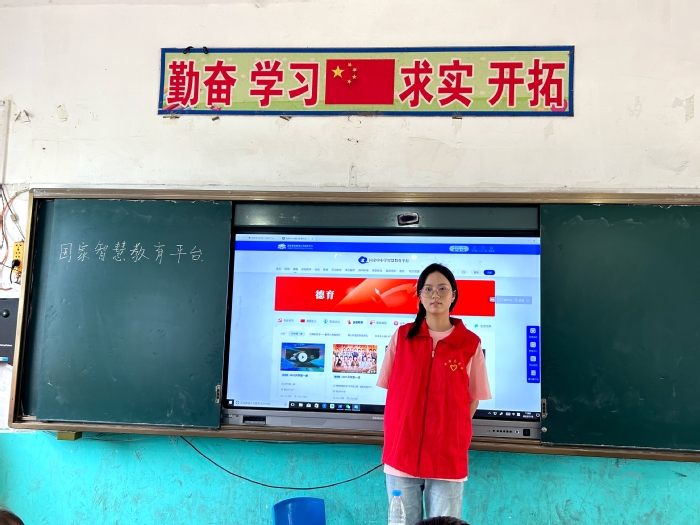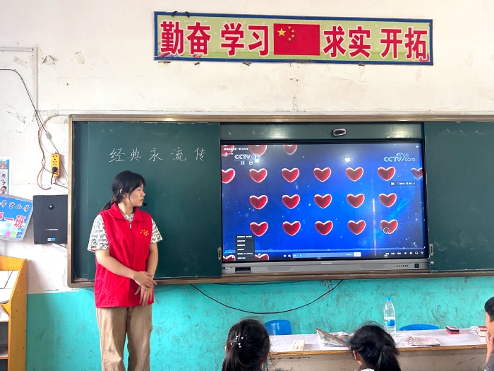 接下来的两天里,推普实践团的队员李徵羽带领三年级学生诵读经典作品《青春中国》、观看电视节目《经典咏流传》,并写下观后感。