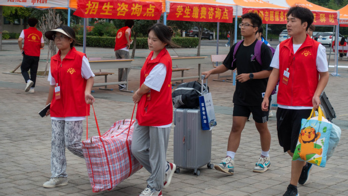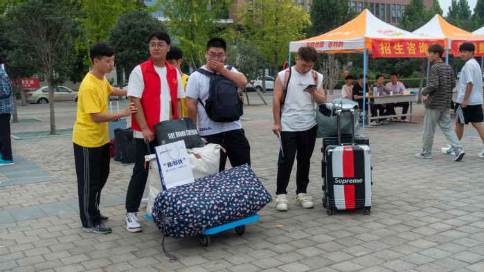随着新同学的到来,书院志愿者引导新生完成报到流程、协助新生将物品送到宿舍。迎新志愿者以优质的服务为大家提供帮助。