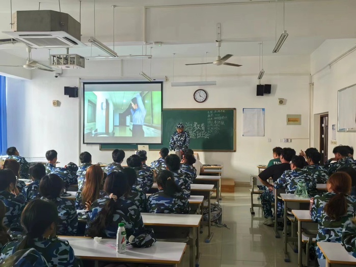 主题班会以朋辈导师讲解、学生参与互动、观看影视作品、典型案例分析为内容,培养学生的爱国情怀,倡导学生做遵纪守法的合格学生。