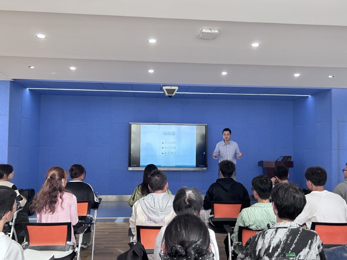 为提高我院学生对英语课程学习兴趣,2023年10月24日下午,在七号楼二楼西露台,我院邀请李巍博士作“国外语言考试技巧”的讲座。我院护理、会计、物流管理和市场营销专业的同学参加了讲座。