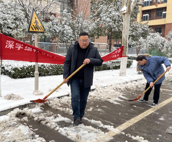凛冽的寒风和厚重的积雪,丝毫没有影响学工人员的热情和工作效率。扫雪过程中,大家手拿铁锹干劲十足,将书院四周主要活动通道的积雪全部被铲除并集中堆放,为师生的安全出行保驾护航。