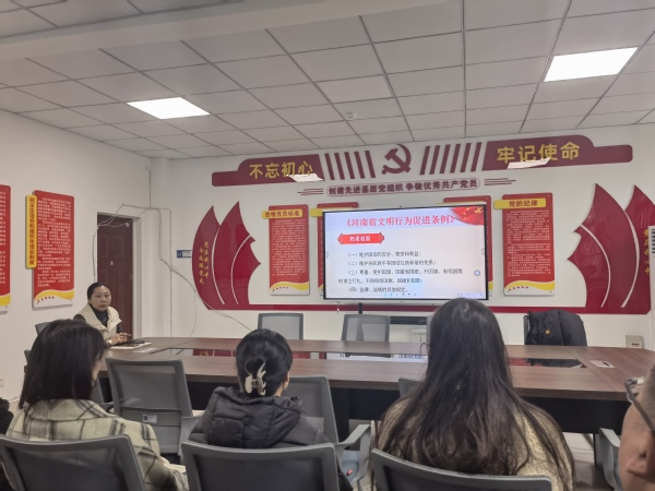 3月4日,丝路书院橐云婷主任带领辅导员学习《河南省文明行为促进条例》、《郑州市文明行为促进条例》,宣传文明行为规范。书院组织文明学生介绍《条例》主要内容、举办专题座谈等方式,引导广大师生树立文明理念、养成文明习惯、营造文明风尚。