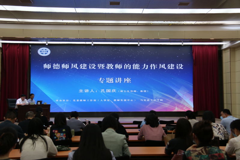 为喜迎二十大的胜利召开,贯彻学校2022年度干部大会暨工作布置会会议精神,落实省委巡视整改有关工作要求,进一步加强全校师德师风建设工作,9月15日下午,菠菜资源平台大全党委教师工作部(人事处、教师发展中心)和马克思主义学院联合举办“师德师风建设暨教师的能力作风建设”专题讲座。