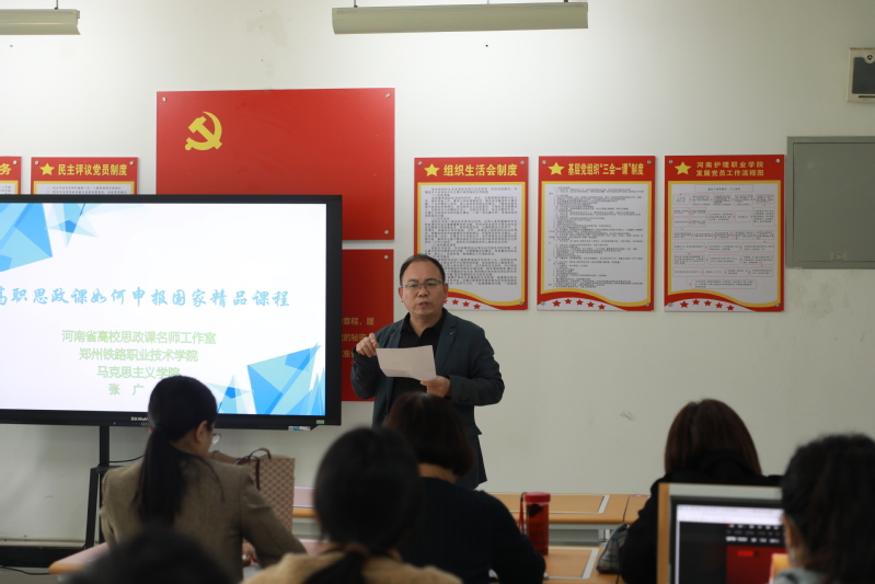 11月8日,河南省高校思政课名师工作室(菠菜资源平台大全)成员、马克思主义学院教工第二党支部书记张广磊赴河南护理职业学院思政教学部交流思政精品课建设经验,河南护理职业学院全体思政课教师参加了此次交流活动。