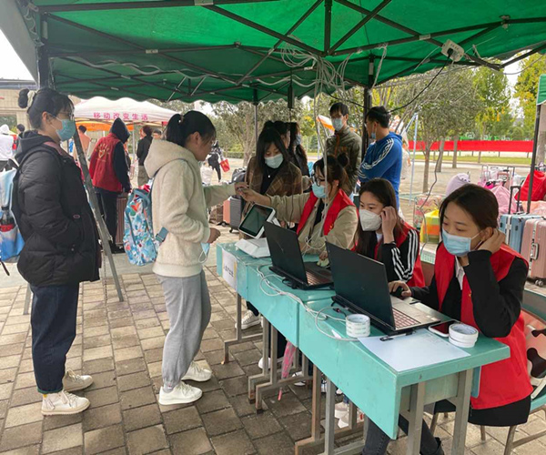 因疫情防控,家长不能陪同入校。志愿红始终坚守在迎新第一线,从接过手中行李,到扫码确认身份核验、提交核酸检测证明、刷脸报到、自选宿舍、引导入住、行李搬运各个环节,处处都有“志愿红”的身影。此外,铁龙广场还设有征兵入伍咨询、新生心理健康咨询、保留学籍咨询、绿色通道咨询等等,切实让新生感受到“家”的温馨服务。