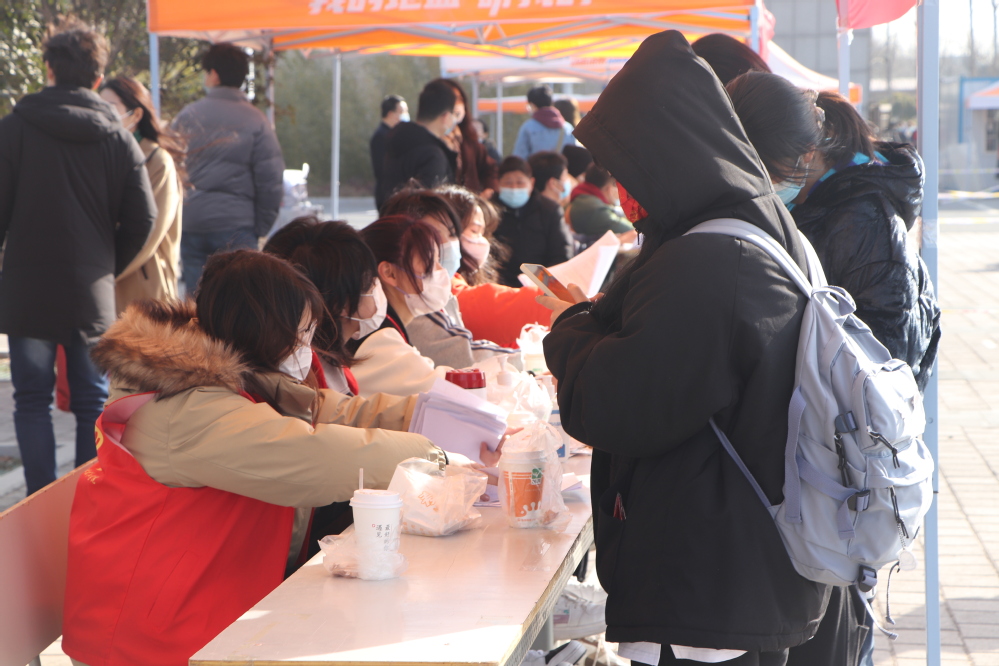 2022年2月26日早上八点,天使书院的志愿者在铁龙广场设立的服务点集合,为即将返校报到的学生提供志愿服务。书院领导及全体育人导师深入学生返校一线,来到学校检查指导学生返校报到工作。