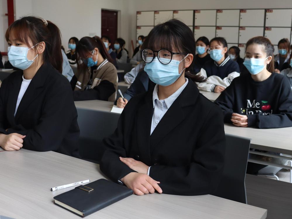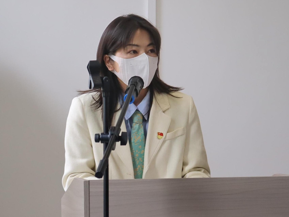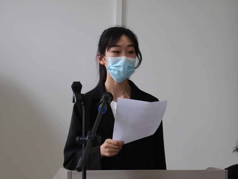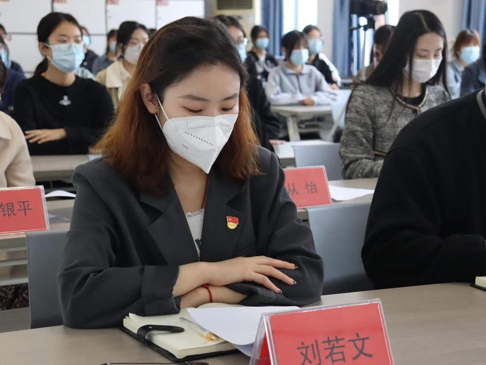 学员代表郑心萌发言说一定会端正态度认真学习,珍惜来之不易的学习机会,切实提高自己的政治素养和思想觉悟,努力成为一名思想政治素养高、专业知识过硬、品学兼优的大学生,争取早日加入中国共产党。