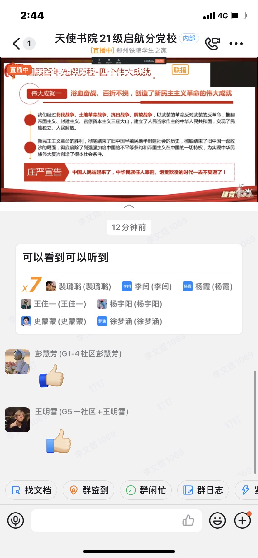 2022年4月24日下午,天使书院“一站式”学生社区启航分党校第二期培训班第十二讲以线上钉钉直播的方式开展,本次授课老师是天使书院育人导师刘旭鹏。