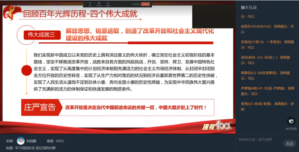会后,学员们纷纷表示要认真学习党的百年奋斗历史,牢记习近平总书记对广大青年的殷殷嘱托,不忘初心、牢记使命,朝着党的第二个百年奋斗目标阔步前行。