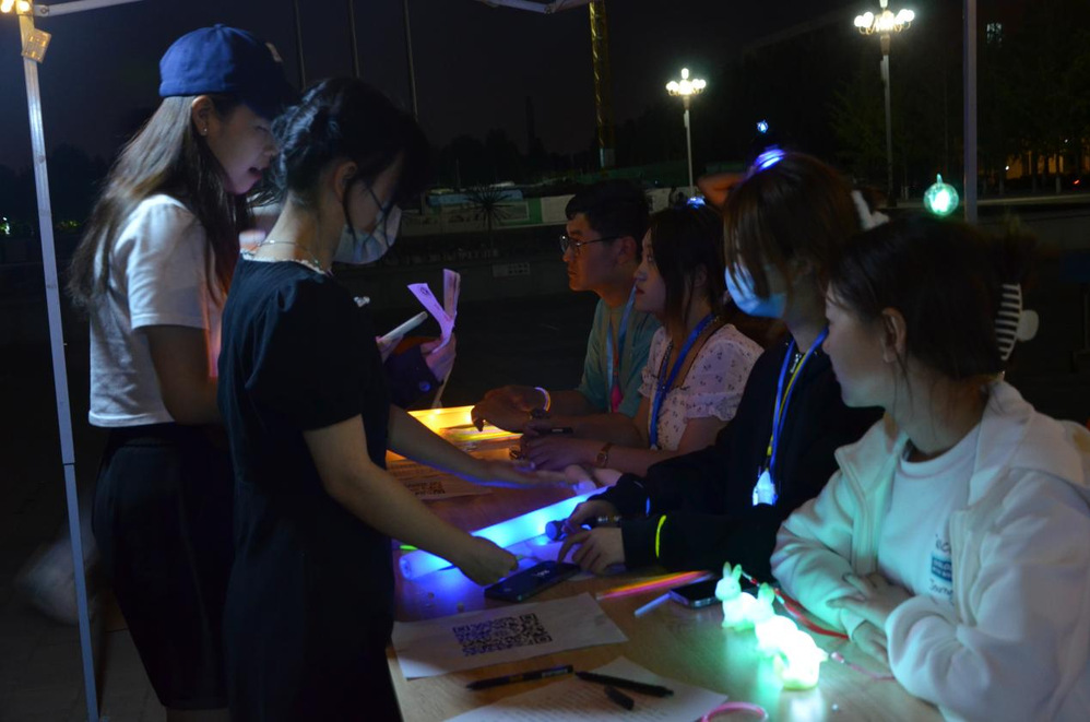 我院学生积极参与此次活动,展现出当代大学生奋发蓬勃、积极向上的精神风貌。活动期间开展了你比划我猜(双人)/荧光字谜(单人),荧光套圈等一系列内容丰富新颖、形式多种多样的心理健康教育宣传活动,活动最后在在微笑中落下帷幕。