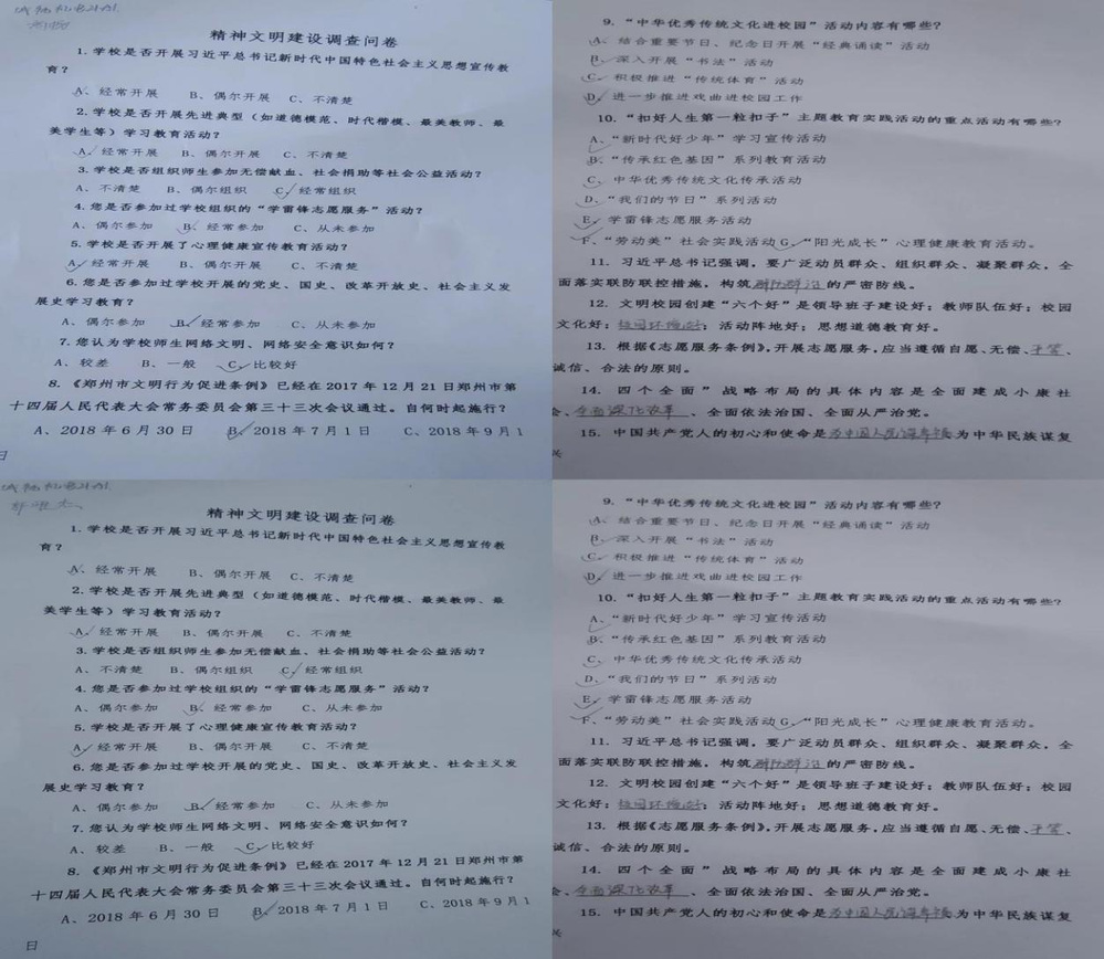 此外,团队成员向部分班级同学发布了精神文明建设调查问卷,以期带动更多的同学提高思想意识,加入到志愿服务活动中去,为城市精神文明建设贡献一份力量。