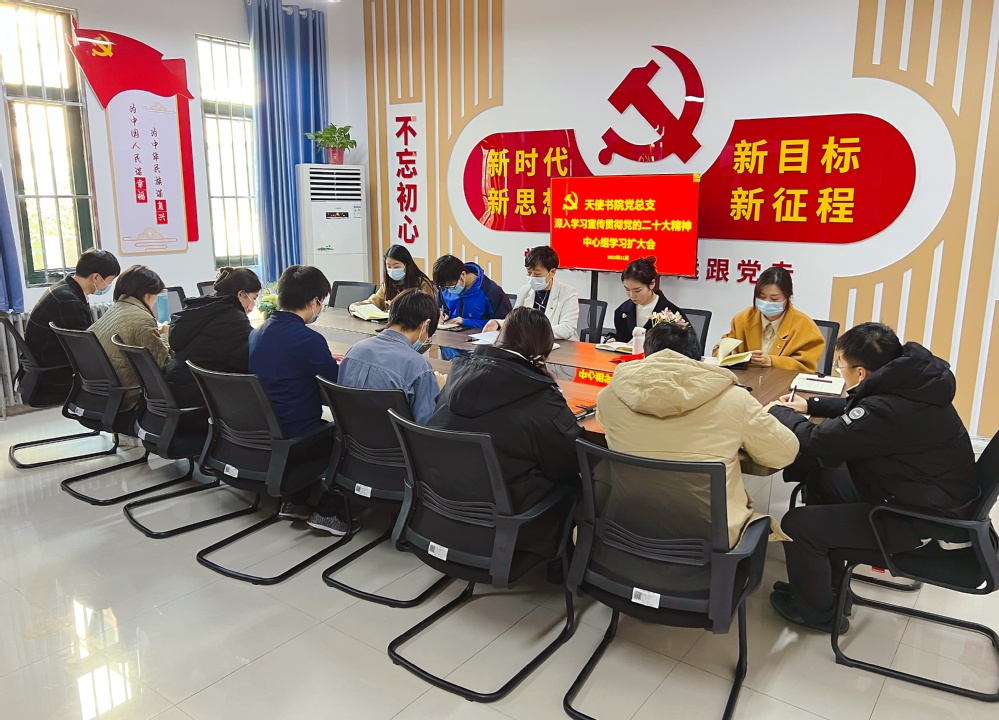2022年11月23日,天使书院党总支在书院二楼会议室召开深入学习宣传党的二十大精神中心组学习扩大会,书院领导班子全体成员和全体辅导员参加会议。