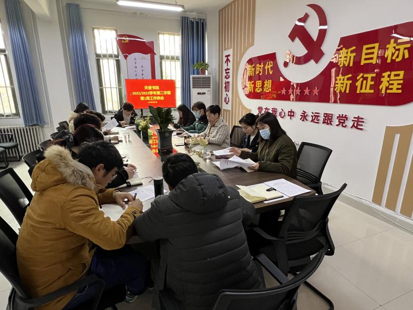 2023年2月21日下午,天使书院在书院二楼会议室召开本学期第一周学生工作例会,党总支书记、院长王芳,党总支副书记、副院长王翡翡,副院长王小珂,书院办公室主任马鹏飞,组织员李文煜及全体专职辅导员参加会议。会议由副院长王小珂主持。