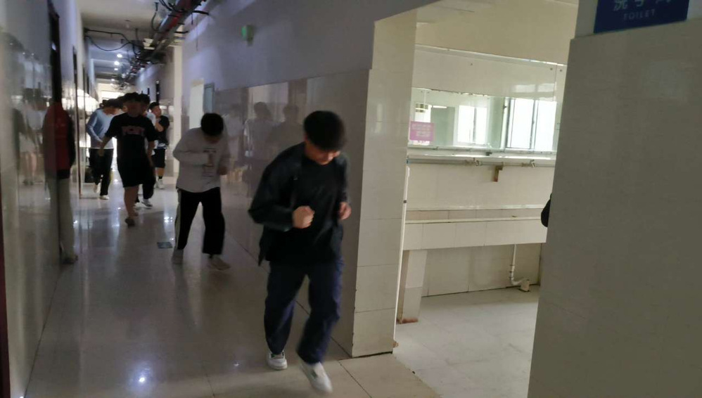 下午14:20,随着楼道消防铃声的响起,同学们迅速做出反应。在老师和志愿者的指引下下,同学们弯腰、护头、捂鼻,按照指定疏散路线撤离,快速到达安全区域。整个疏散演练过程组织有序,没有出现碰撞和踩踏事件。到达安全区域后,各社区长迅速清点人数,做到全员安全撤离。同学们按照队形快速排列整齐,过程井然有序。何峰老师对本次演练进行了评价,指出了疏散过程中的不足之处,同学们认真倾听,并进一步学习了相关的疏散演练的知识。