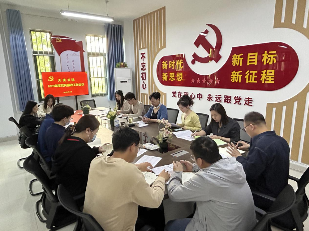 为深入学习贯彻习近平新时代中国特色社会主义思想,推进全面从严治党向纵深发展,教育引导教师党员进一步增强廉洁自律意识,2023年4月18日上午,天使书院在书院二楼会议室召开2023年度党风廉政工作会议,党总支书记、院长王芳,党总支副书记、副院长王翡翡,党总支纪检委员、副院长王小珂,书院办公室主任马鹏飞,组织员李文煜及全体教师党员参加会议。