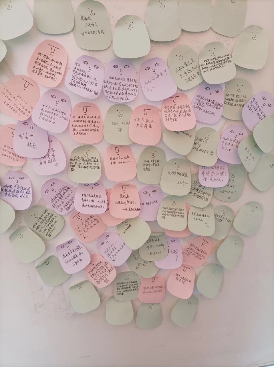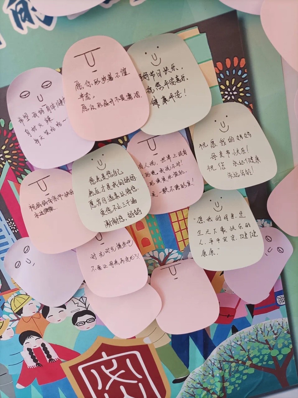 在书院青年发展部的指导下,书院学子踊跃参加,纷纷将书写好的“告白卡”粘贴在“告白墙上”,以此来表达对母亲最真挚的祝福。小小的“告白卡”诉不尽离愁别绪,道不尽母爱情深。