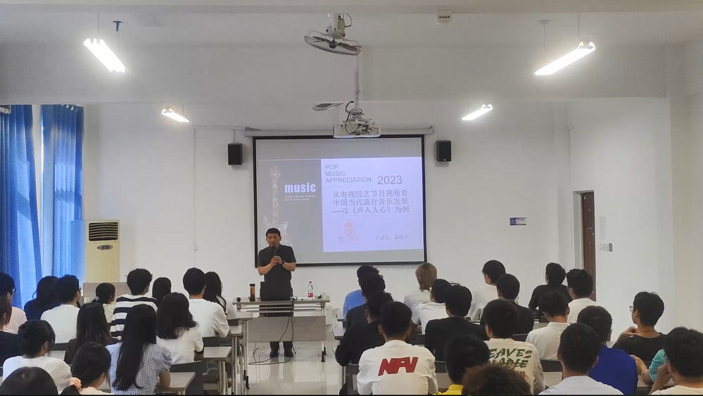 邹联丰以时间为主线,从中国流行音乐的发展历程及传播方式的变迁、电视综艺节目对流行音乐的影响、原创新形态声乐演唱节目《声入人心》的创新等方面,深入浅出地讲解与富有感染力的示唱,带领大家重温旋律优美、脍炙人口的经典之作,解析了经典作品产生的背景与时代影响力;并结合节目《声入人心》,分析精准定位的小众题材是如何通过音乐作品的改变、专业演唱者流行化的演绎,让高雅艺术以接地气的方式直抵人心。他用独到的音乐讲解、醇厚的音质、美妙的哼唱为在座师生带来一场视觉、听觉、感觉的盛宴,让人沉醉不知归。