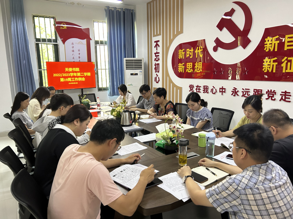 2023年6月26日上午,天使书院在书院二楼会议室召开本学期第十九周学生工作例会,书院班子成员及全体专职辅导员参加会议。会议由副院长王小珂主持。