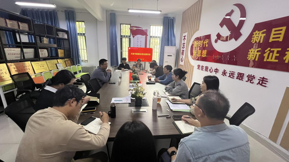 10月11日下午,天使书院在党团活动室召开就业创业座谈会。会议邀请人工智能学院张博博士亲临指导,书院班子成员及全体育人导师参加会议。会议由书院党总支书记、院长王芳主持。