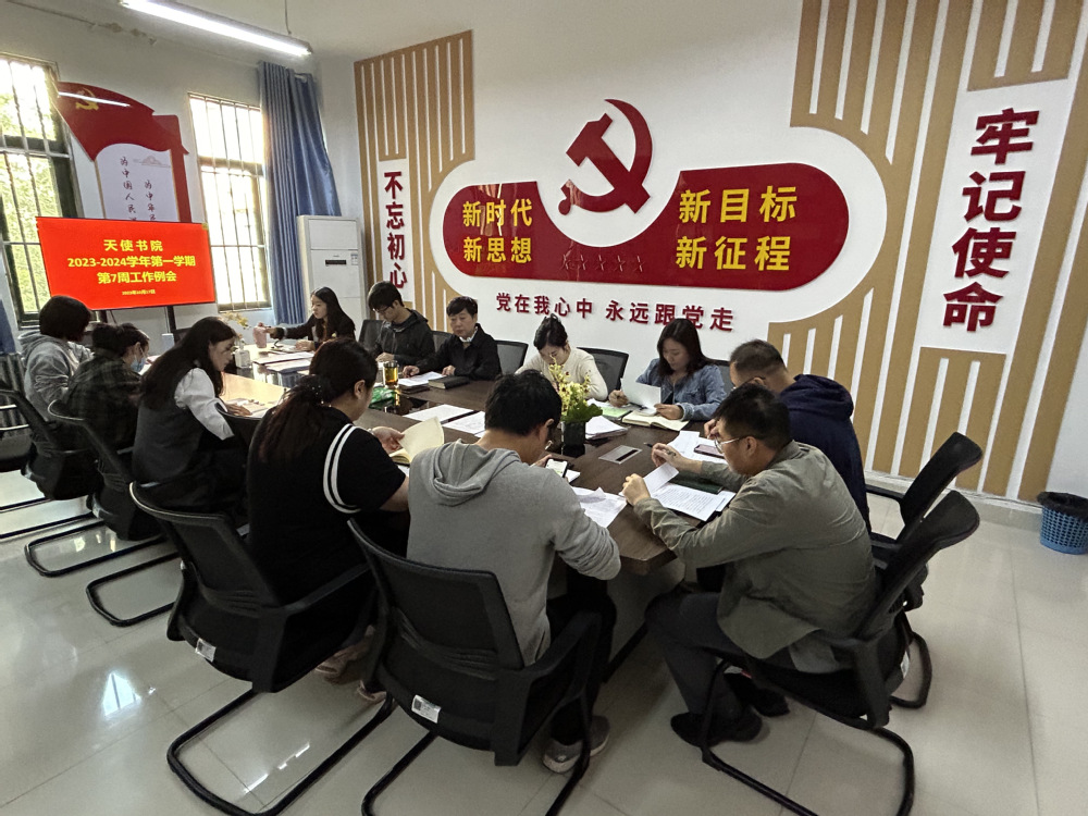 2023年10月17日上午,天使书院在书院二楼会议室召开本学期第七周学生工作例会,书院班子成员及全体专职辅导员参加会议。会议由副院长王小珂主持。