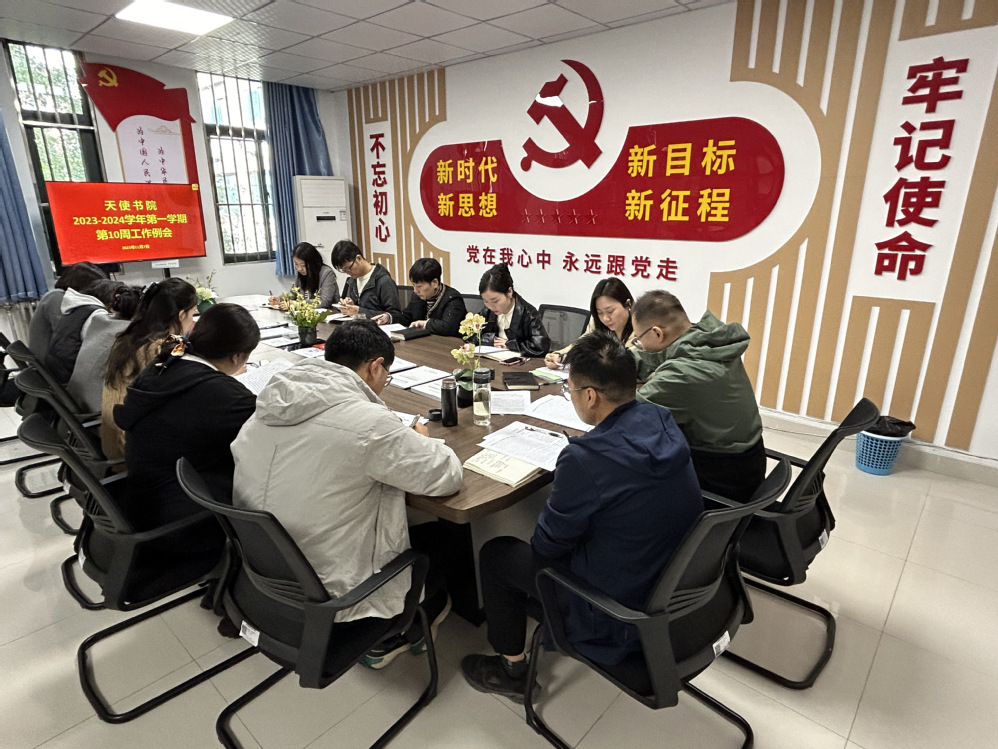 2023年11月7日上午,天使书院在书院二楼会议室召开本学期第十周学生工作例会,书院班子成员及全体专职辅导员参加会议。会议由副院长王小珂主持。