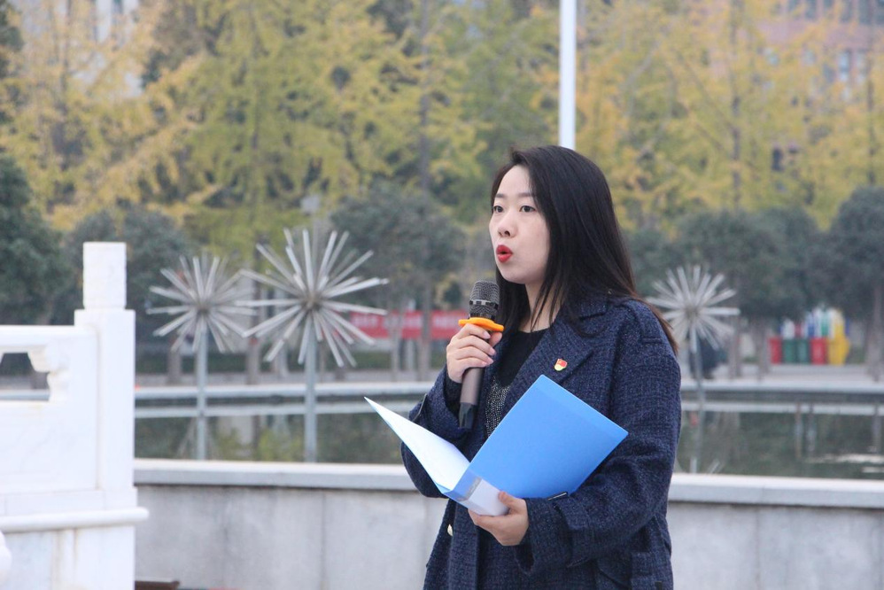 旗完毕后,学生代表王梦远进行了演讲铿锵有力的发言无不诠释了她深深的爱国热情,让同学们了解了如何肩负重任成为时代先锋。最后,教师代表马鹏飞老师进行讲话,号召同学们为实现中华民族伟大复兴贡献自己的青春和力量。