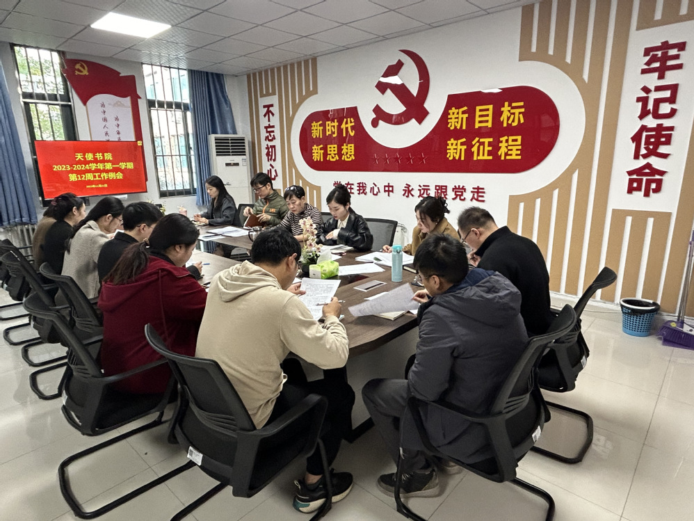 2023年11月21日上午,天使书院在书院二楼会议室召开本学期第十二周学生工作例会,书院班子成员及全体专职辅导员参加会议。会议由副院长王小珂主持。
