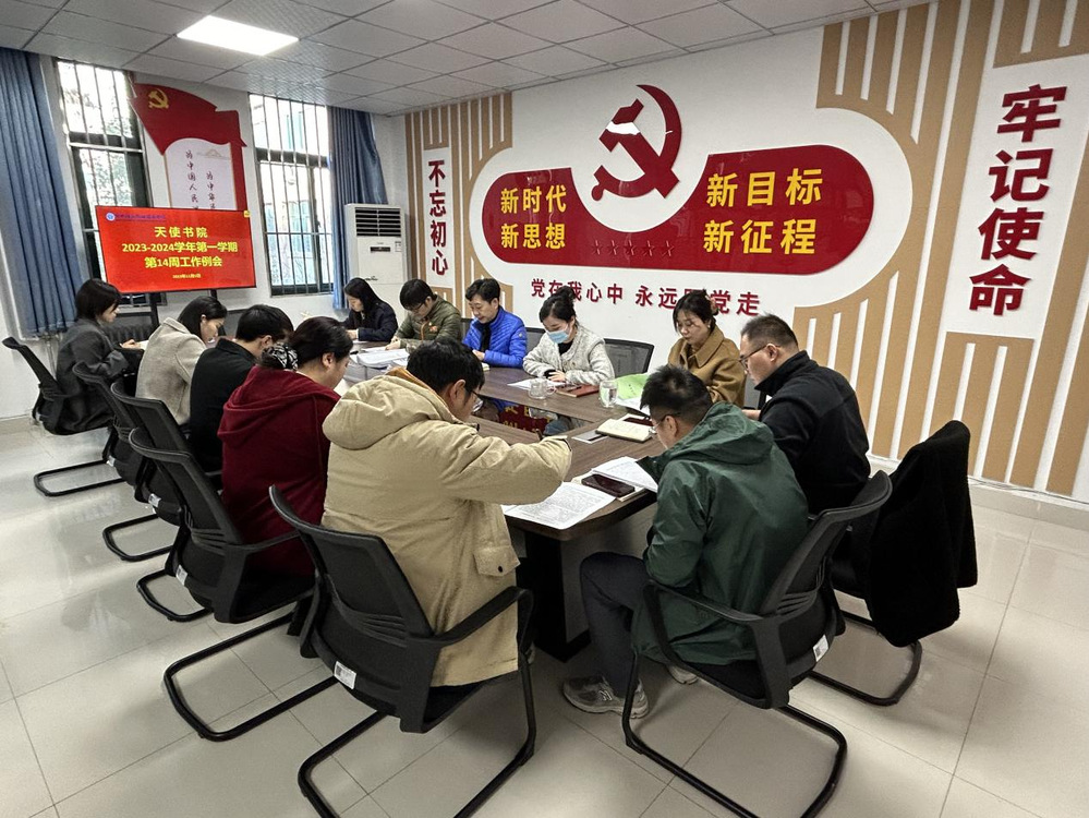 2023年12月5日上午,天使书院在书院二楼会议室召开本学期第十四周学生工作例会,书院班子成员及全体专职辅导员参加会议。会议由副院长王小珂主持。