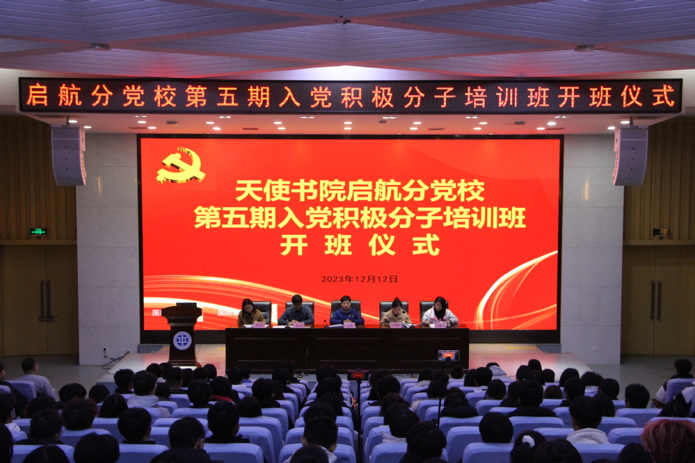 12月12日下午,天使书院启航分党校第五期入党积极分子培训班开班仪式在第二报告厅举行。书院党总支书记、院长王芳,党总支副书记、副院长王翡翡,副院长王小珂,书院办公室主任马鹏飞,组织员李文煜及全体育人导师出席会议,404名入党积极分子通过“主会场+视频分会场”相结合的方式参加会议。会议由组织员李文煜主持。