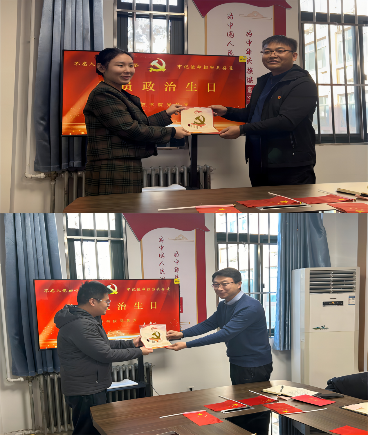 党总支副书记丁宁、魏冠义分别为党员教师赠送“政治生日”贺卡(二)