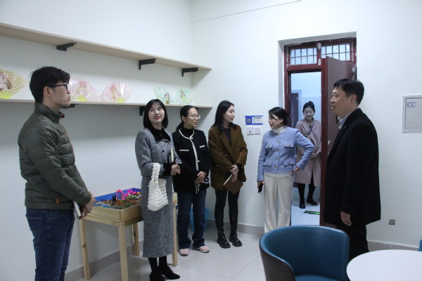 李红峰一行参观了书院心理健康教育办公室、心灵驿站、谈心谈话室等建设情况,深入了解了书院在大学生心理健康教育工作方面的经验和做法。
