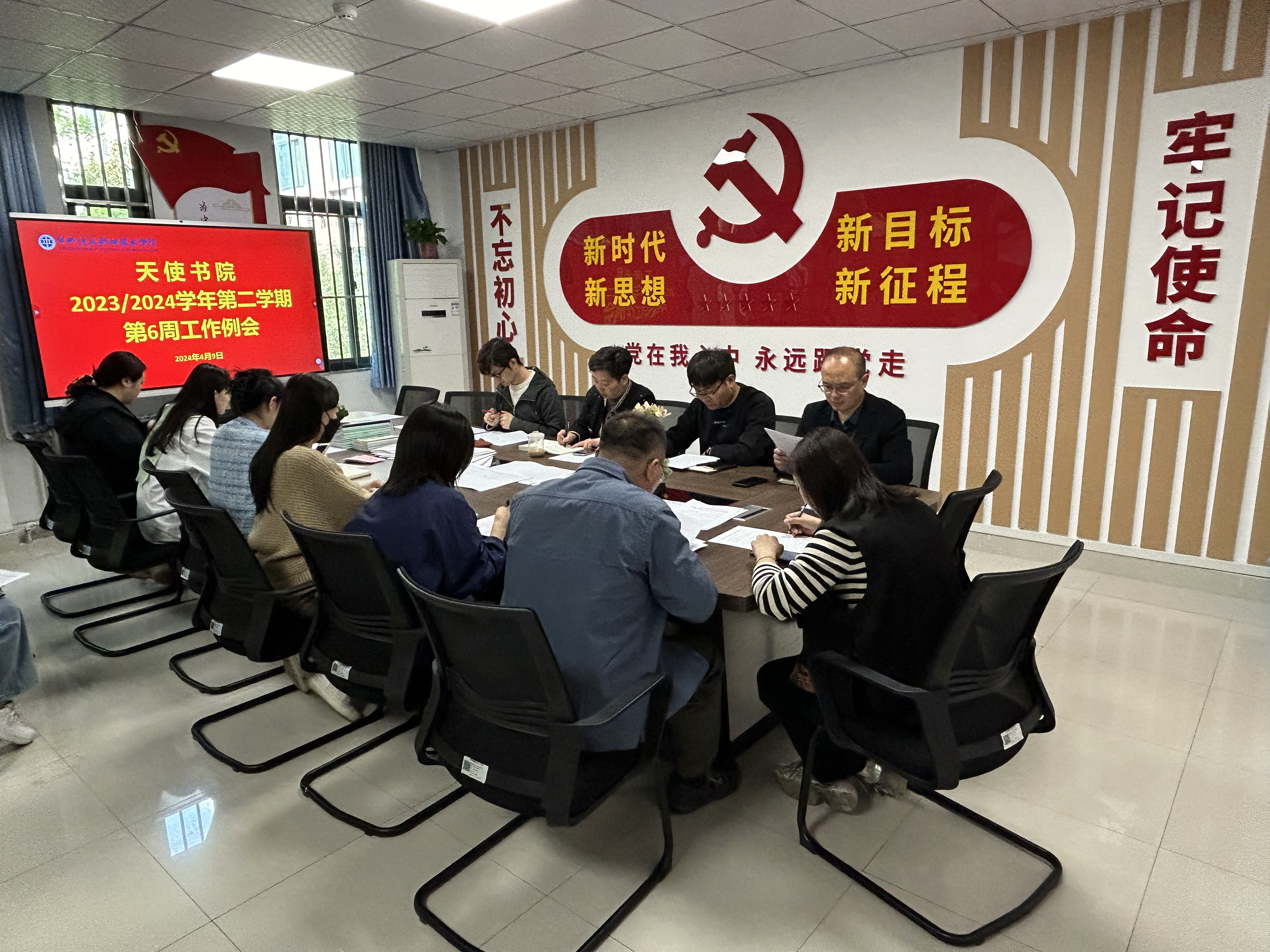 4月9日上午,天使书院在书院二楼会议室召开本学期第六周学生工作例会,书院班子成员及全体专职辅导员参加会议。会议由副院长王小珂主持。