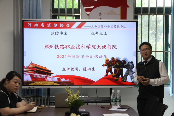 为增强天使书院师生消防安全意识,提升应对突发火灾事故自我保护能力,4月16日下午,天使书院组织书院全体教职工开展消防安全知识培训。此次培训邀请了河南省消防协会义务消防科普宣传服务队的陈雨生教员授课。