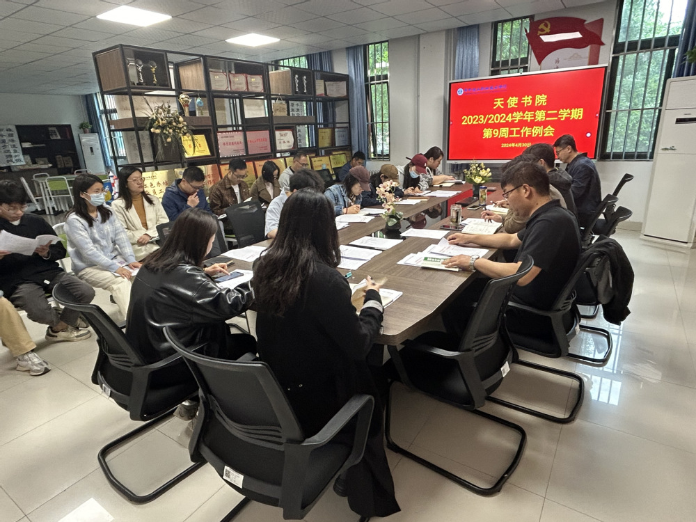 430日中午,天使书院在书院二楼会议室召开本学期第九周学生工作例会,书院班子成员及全体辅导员、班主任参加会议。会议由副院长王小珂主持。