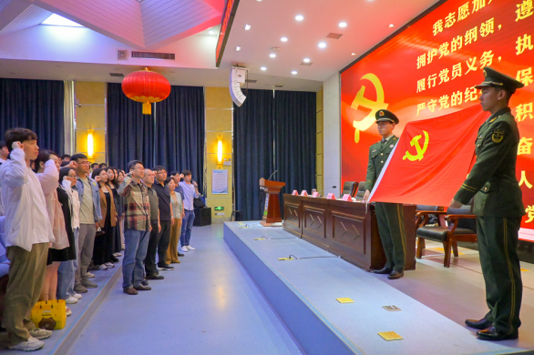 随后,全体党员重温入党誓词,铮铮誓言,声声入耳,激励全体师生在新征程上永葆初心、勇担使命。