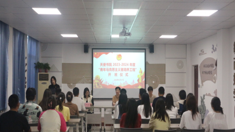 为贯彻落实党的二十大精神,深入实施“青年马克思主义者培养工程”,发挥大学生骨干在培育和践行社会主义核心价值观活动中的示范带动作用。4月17日,天使书院在博雅讲堂举行2023-2024年度“青年马克思主义者工程”大学生骨干培训班开班仪式。天使书院党总支书记、院长王芳,副院长王小珂,学生工作办公室主任、分团委书记李文煜及培训班全体成员参加此次活动,分团委副书记、书院学生发展办公室负责人高灿灿主持会议。