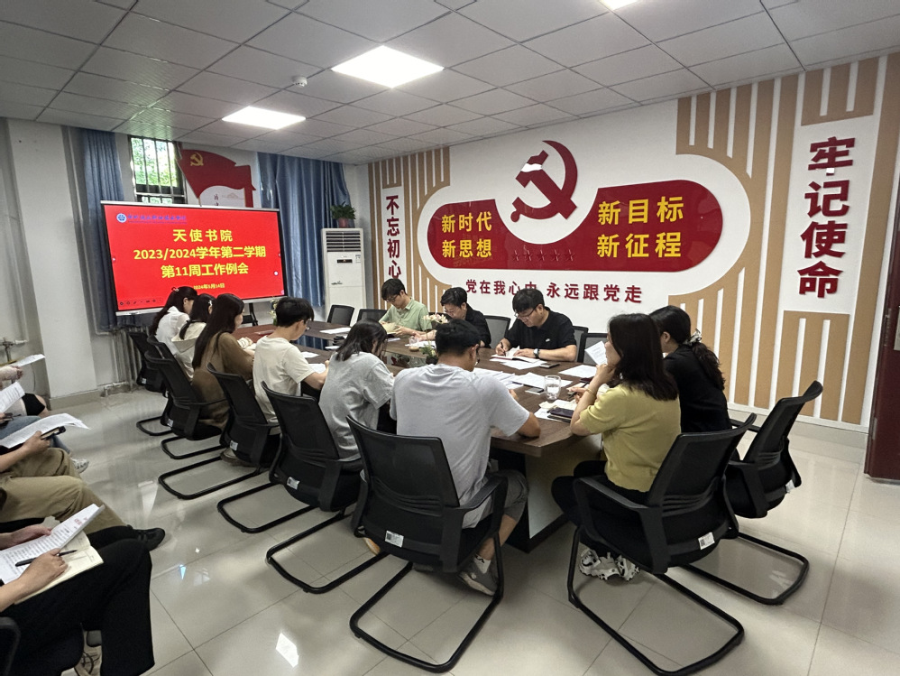 5月14日中午,天使书院在书院二楼会议室召开本学期第十一周学生工作例会,书院班子成员及全体专职辅导员参加会议。会议由副院长王小珂主持。