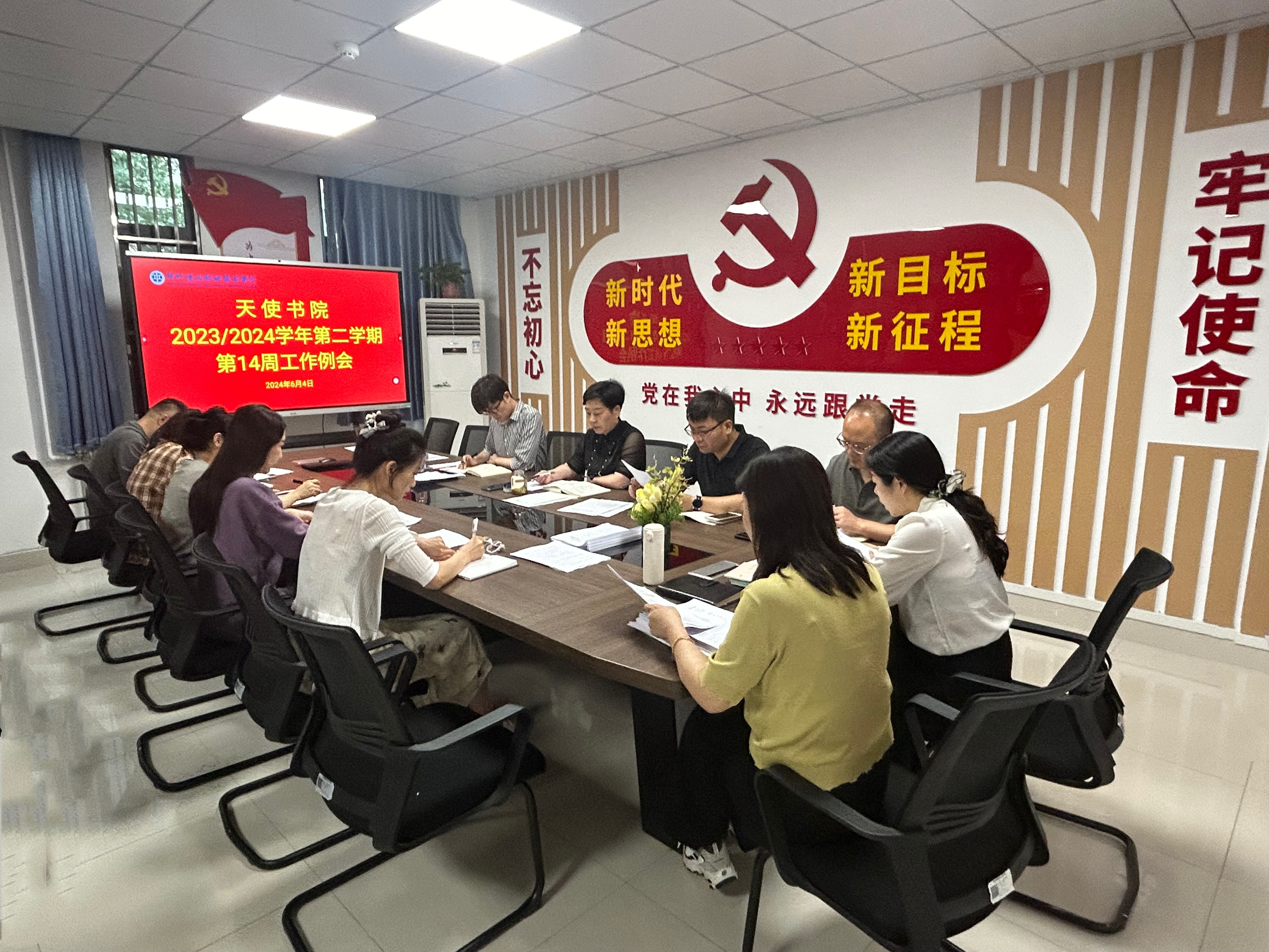 64日上午,天使书院在书院二楼会议室召开本学期第十四周学生工作例会,书院班子成员及全体专职辅导员参加会议。会议由副院长王小珂主持。