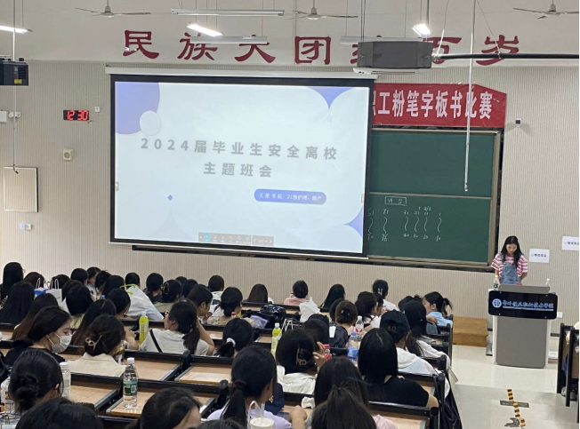 强化教育引导——“青春不散场·启航再出发”。根据学校《关于开展2024届毕业生文明离校主题教育活动的通知》要求,全体毕业班辅导员通过线下班会、线上倡议等形式,面向毕业生开展理想信念教育、安全离校教育、择业就业教育和感恩荣校教育,组织毕业生收看学习“毕业如歌”主题心理健康公开课,教育引导学生增强“爱党、爱国、爱校、荣校”之情,切实为全体毕业生上好大学生涯的“最后一课”。
