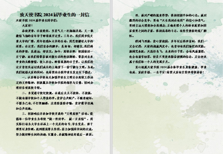 线上推送《致天使书院2024届毕业生的一封信》