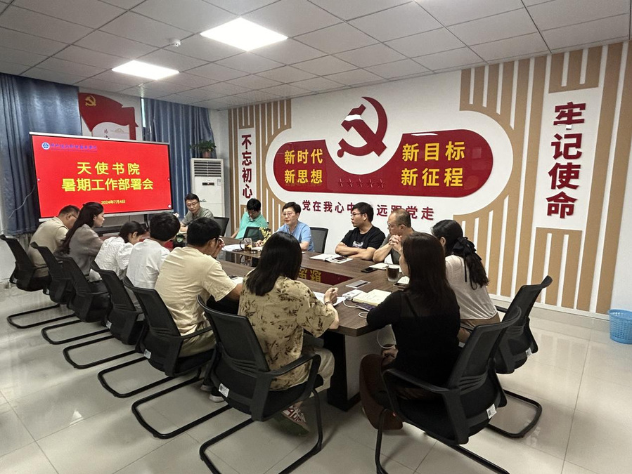 7月4日上午,天使书院在书院二楼会议室召开暑期工作部署会,书院班子成员及全体专职辅导员参加会议。会议由党总支书记、院长王芳主持。